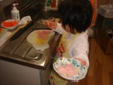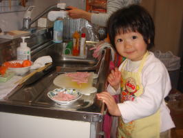 |    | お手伝い、お手伝い 今日はお魚、おとさんはお魚のお皿 依亜とおかさんは、こっちのお皿 | ||