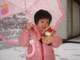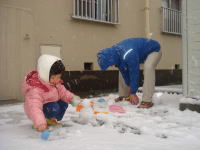 | おとさん、早く雪を集めて!