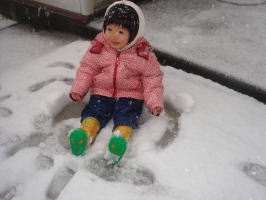 | お外は真っ白 雪だるまさんが喜んでる