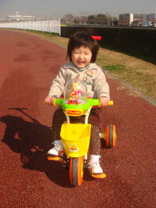 |  | 今日は三輪車の特訓です