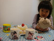 |  | ペコちゃん、ポコちゃんのケーキを買ってきたから、ハリコちゃんも一緒に食べようね♪ |