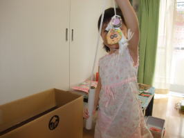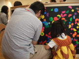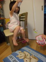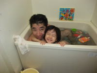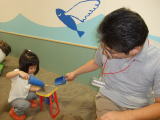 |  | おとさんが朝からゴソゴソとなにしているのかと思ったら、いつの間にか釣り堀が完成しました。 段ボール箱の中に磁石のついた釣り糸を垂らすと、魚やタコさんだけではなくて、アンパンマンなんかも釣れちゃうのよ!! 釣りって面白いね。 | ||||