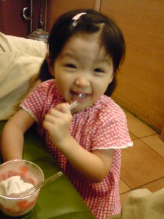 | 出発前にアイスクリームを食べて ヒンヤ〜リ よーっし ♪ タッタラ タッタラ お馬さんなんかに負けないもんね〜 ツットコ ツットコ♪  | |||||