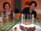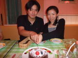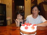 | お夕飯、今日の主役はこの二人。 ママババとおねえちゃんの旦那様のお誕生日会です。  | でもでも、ケーキに入刀するのは、もちろん新婚のおねえちゃんでした。  | ||||