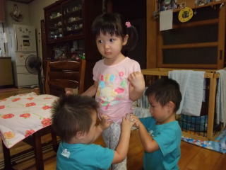 |  | 私は積み木 コウ君は歌をうたい ユウ君は電車で遊ぶ おっあそこに遊具を発見!!みんな急げ! | ||||