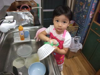 |  | 私のことを、遊んで、食べて、寝ているだけの幼児だと思ってます? なんと、洗い物までしちゃうのよね。 主婦してるわぁ〜  | ||||