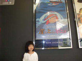| 依亜人生、初めての映画館  | 「崖の上のポニョ」という可愛い映画  ちょっと眠くなちゃったけど、 映画はとっても面白かったよ 予習していた主題歌も 一緒に歌うことが出来たんだ | ||||