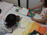|  寝る前は毎日の日課、図書館で借りてきた絵本を読んでもらいます。平仮名くらい自分で読めるけど、読んでもらうのが楽しいです。 | |||||