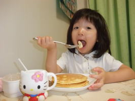 | お出かけなのよ。とっても楽しく遊べるところなの。ホットケーキをいっぱい食べて、エネルギーを充填!  | お友達はお留守番しててね  | ||||