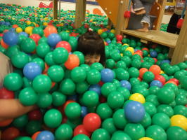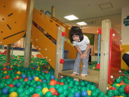 | ボールのプール、怖いかな?怖くないかな?飛び込んでも平気かな?  | えーい ドボーン うわー溺れちゃうよーーーー  | ||||