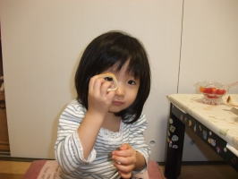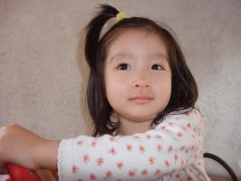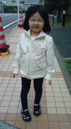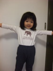 |  | 白い長袖に紺のモンペ 私のシャツにはゾウさんの絵 本物のゾウさんは、こーんなに大きいよ みんな知ってる? 私はゾウさん見たことあるから ウソじゃないよ |
