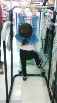 | ぶらさがり健康器? 本当に背が伸びるの? だまされたと思ってチャレンジ! | ← ← ← ← ←  ふふふ、、、だまされている |