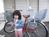 |  |  おかさんの欲しがっていた自転車を買いました。私の乗るところも、おとさんが付けてくれたし、おまけにシナモロールのおもちゃも付けてくれたから、乗るのが楽しみだな〜 |
