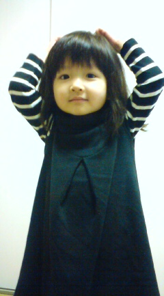 |  わたし最近、クロミちゃんになりたいと思っているの。クロミちゃんは黒い頭巾を被っているの。とても黒が似合う子なの。とっても可愛い子なの。どうやったらわたしもクロミになれるかなぁ〜って考えたの。だから、今日は黒いお洋服を着てみたわ。 |  |