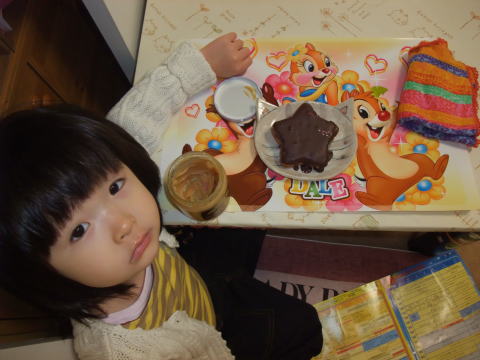 |  おとさんが買ってくれたチョコパン。 可愛い形をしているのに、依亜が食べられないレーズンが入っていたの。 残念だけど、周りのチョコだけで我慢するわ。 | |||||||||||||