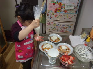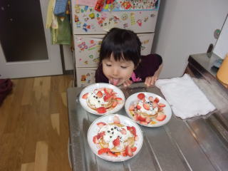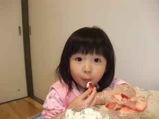 | 最後はイチゴちゃんを白いクリームでお化粧して、パクリパクリ、甘さ倍増!!  | |||||||||||||
