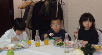 | ヒントね。。。 親戚のお友達と一緒に ご飯を食べているんだよ |  | ||||||||||||