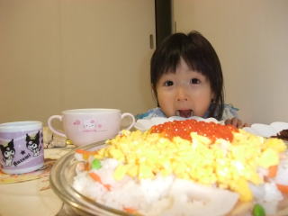 | ちらし寿司、みんなの分も全部、 大皿のままバクッと・・・