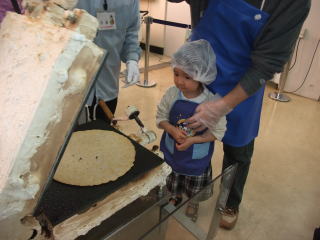 | まずは生地を鉄板に広げます |  |