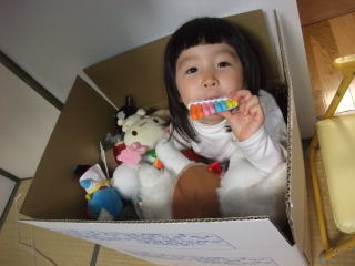 お友達のぬいぐるみも箱に詰め〜