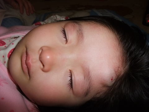 おとさんと遊んでいて、おでこに大きなタンコブができちゃった