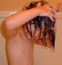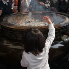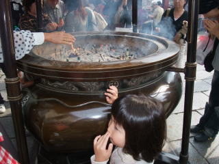 | お線香には慣れたものよ こうやって頭に掛けるのね