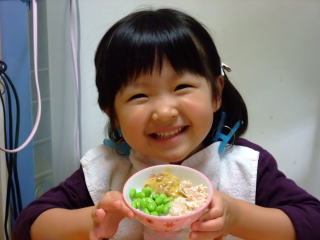 |  | お掃除頑張ったら、お腹も空いちゃった。お手製3色丼を いっただきまーす!