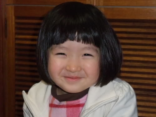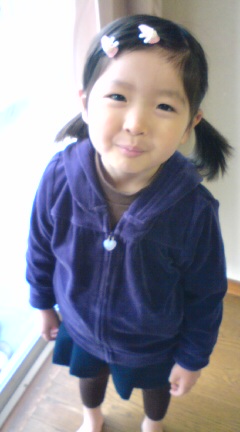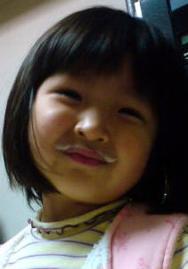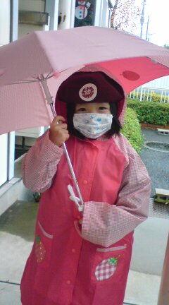 | マスクして完全防備!!インフルエンザが怖いものね  | でも、毎日、お口の周りに白いおヒゲ出来るくらいに、イッパイ牛乳を飲んでいるから、依亜は元気イッパイなの。  幼稚園の2学期もあと少し。皆勤を目指して頑張るぞ! |