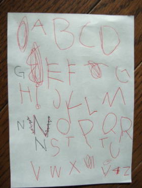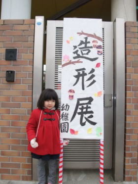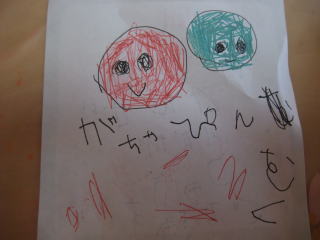 | 幼稚園の造形展というイベントに、おかさんとババが来てくれたよ 幼稚園で描いた絵や、お友達と一緒に作ったものがイッパイで、とっても楽しいからね。 |  上(6月):めいろのおかしやさん 下(10月):運動会の絵 |