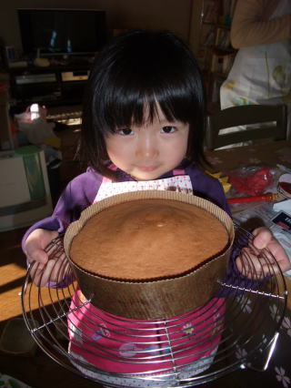 | 生地をコネコネ オーブンで焼きます | こんがりキツネ色で いい匂いのスポンジ |