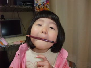 |  いえーい、すごいっしょ!? 鉛筆を食べたんだよ。 | |