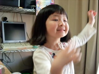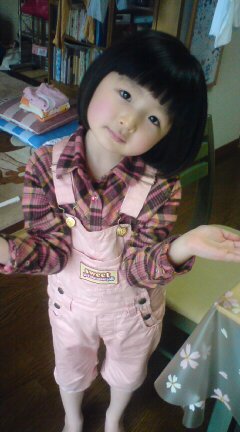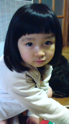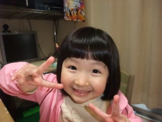 | 毎週日曜日の朝はプリキュアを見て、お歌で踊るのよ〜。みんなも踊らない?  | 今日はおとさんと二人で床屋さんへ行ってきたけど、近所の安い床屋さんだったからかなのかな?前髪が斜めになっていたわ・・・ でもそこがチャームポイントになってGOOD  |