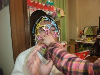 | 今日も相変わらず、かぶっているところから一日が始まります。しかし今日はマスクマン2号とは戦いません。  | |