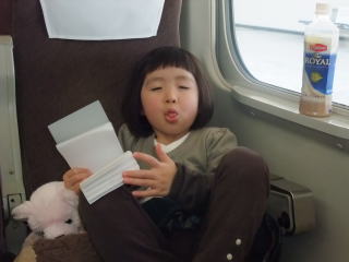 |  | 今日は正義の味方ごっこをお休みして、新幹線でビューっとパパ実家に行ってきます。 |