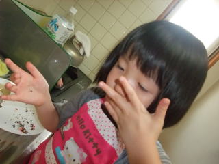 | 粉ふりかけて  | 手についたら舐めちゃって  |
