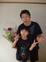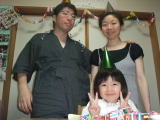 |  手作りケーキ食べて クラッカー鳴らして 三角帽子を被って プレゼントを持ってパチリ ほーら、おとさん嬉しそう! |  依亜プレゼンツお誕生日会 楽しかったでしょ? |