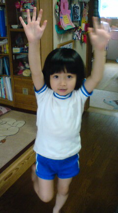 |  | 運動会で一番にゴールしたら、こうやって両手を上げてテープを切るんでしょ? 依亜、一番になれるかな? 運動会まで、あと4ヶ月。 猛特訓が必要だね。 |