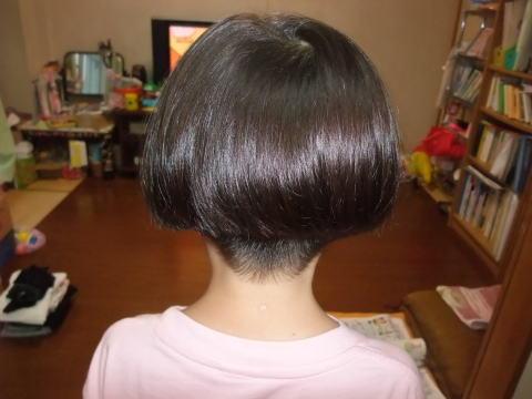 | 今日は床屋さんへ 前回は「ちびまる子ちゃん」カットにしたので 今回は「ワカメちゃんみたいにしてください!」って言ったの そしたら、お店の人がビックリして「本当にいいの?」だって・・ 私はいつだって真面目少女なのよ。  ちょっと控えめなカリアゲだけど、涼しそうでしょ!? | |