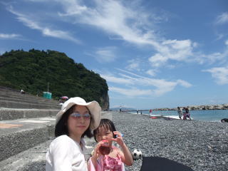 | 先週の静岡に引き続き、 海水浴の第2弾は神奈川です。 毎年恒例(?)の三浦半島 去年と違う浜だけど、ここはどうかな?  | |