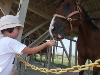|  | 馬に人参あげたり、またもやジャブジャブ池で泳いじゃいました。  |