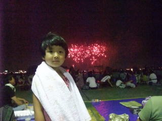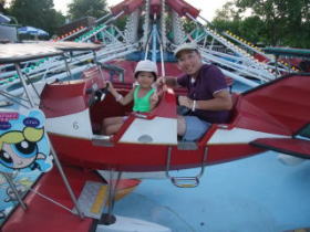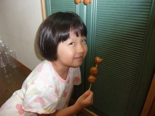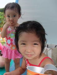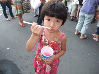 プールでおとさんと遊んだ後は、屋台でいろいろ食べたり、ビンゴ大会で楽しんだよ。