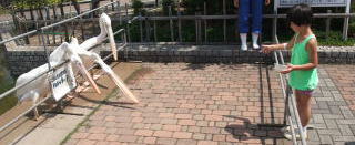 | ペリカンに餌をあげるなんて、家にいたらできないことだわね。 |