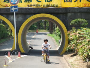 どんなにスピード出しても落っこちないんだね。お家まで来るつもりなのかな?