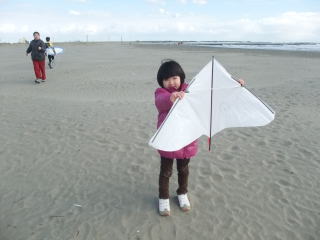 |  | 幼稚園でもらった凧を揚げるときがやってきました!! 初日の出が終わった広い海岸で、青空高く舞い上がっていきます。 すごいすごい、高すぎて見えなくなっちゃうよ。  |