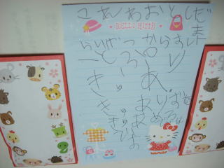 |  | 依亜から、おとさんとおかさんに”お年玉だよ”、依亜の貯金箱にはイッパイお金があるから、イッパイあげるよ。 「これわ おとしだま らいげつから すいーとぷりきゅあ きゅありずむ きゅあめろでぃ です」 |
