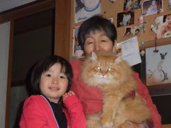 | 我が家には無いコタツ 日本の冬はコタツにミカンだねェ〜  | あらあら、ぷーちゃん 毛がフワフワで抱っこしていると暖かいよ。 ぷーちゃんが暖房代わりになるねェ〜  |
