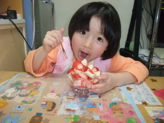 |  | てんこ盛りのイチゴ&バナナ デザートは別腹・・・ |