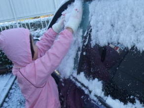 | イエイ イエイ 雪が降ったよ〜  | 車に積もった雪も綺麗に落としましょうね  |