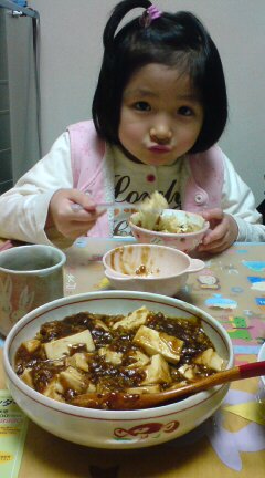 |  | おかさん特製まーぼーどーふー 辛くないから、イアもバクバク食べられる おっいし〜 |