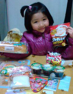| おかさんは、お腹が大きくて大変。もうすぐ私もお姉ちゃんになるの。 だから、おかさんのお手伝いで、買い物に行ってきました。 高いところにある物は、お店の人にお願いして取ってもらいました。 ちょっぴり重かったけど、こんなにイッパイ買ってきたんだよ。 |  |
